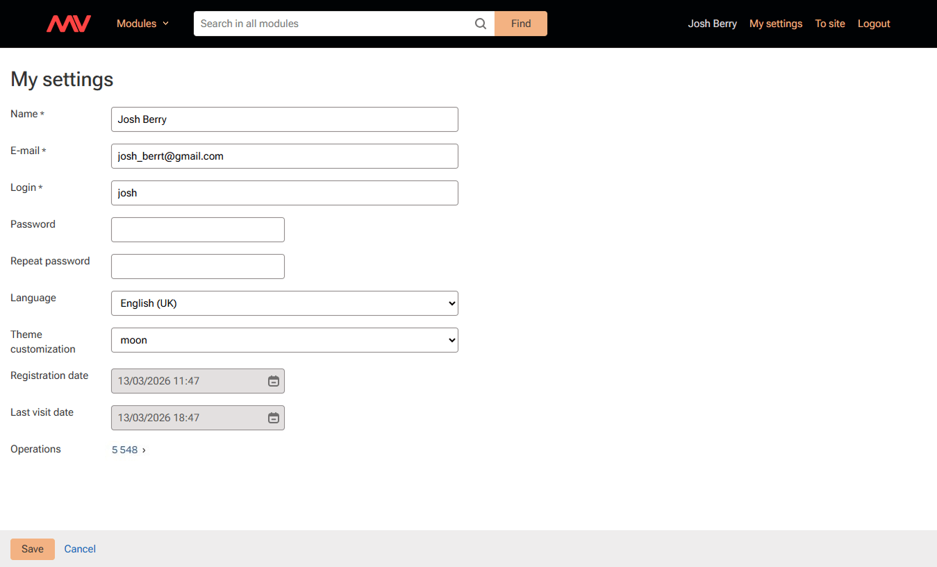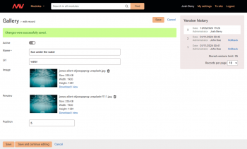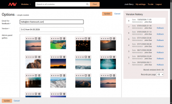 For data represented as a single entity, simple modules are created. These modules do not have a main list but still maintain a change history for all fields.