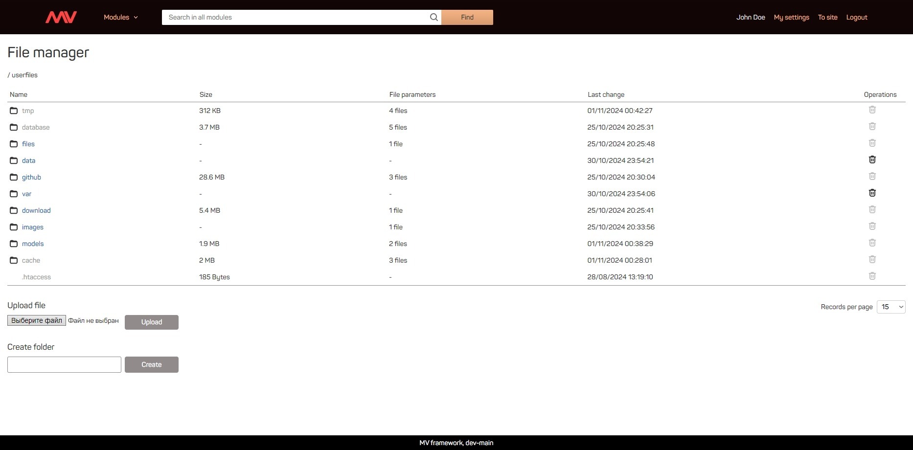 Upon deletion, a record is initially placed in the trash bin, from which it can be permanently removed. A log of user operations is kept, with search options by date, name, and other parameters.