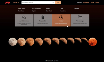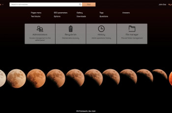 During authorization, a user enters their login and password. After two incorrect password attempts, a CAPTCHA verification code is required. The main page displays the primary modules of the admin panel, and permissions for each user are individually managed.